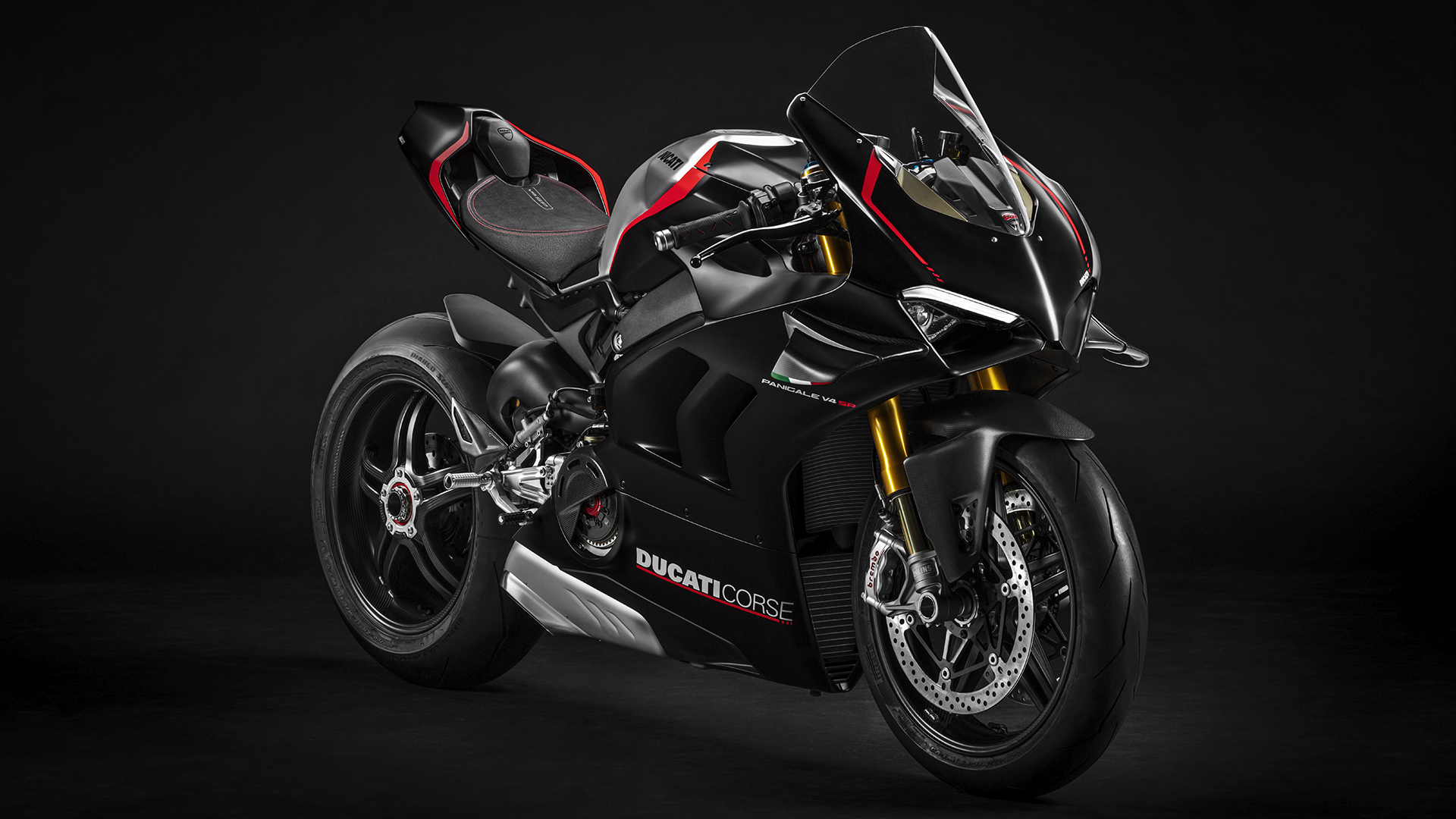 The Panigale V4 SP - 214 hp, 12.6 kgm of torque and a dry weight of 173 kg - has a dedicated livery and is equipped with all the technical features to enhance its qualities in track use. Many elements derive from the Superleggera V4: carbon rims, brake calipers and master cylinders, dry clutch and the same chain size (520).