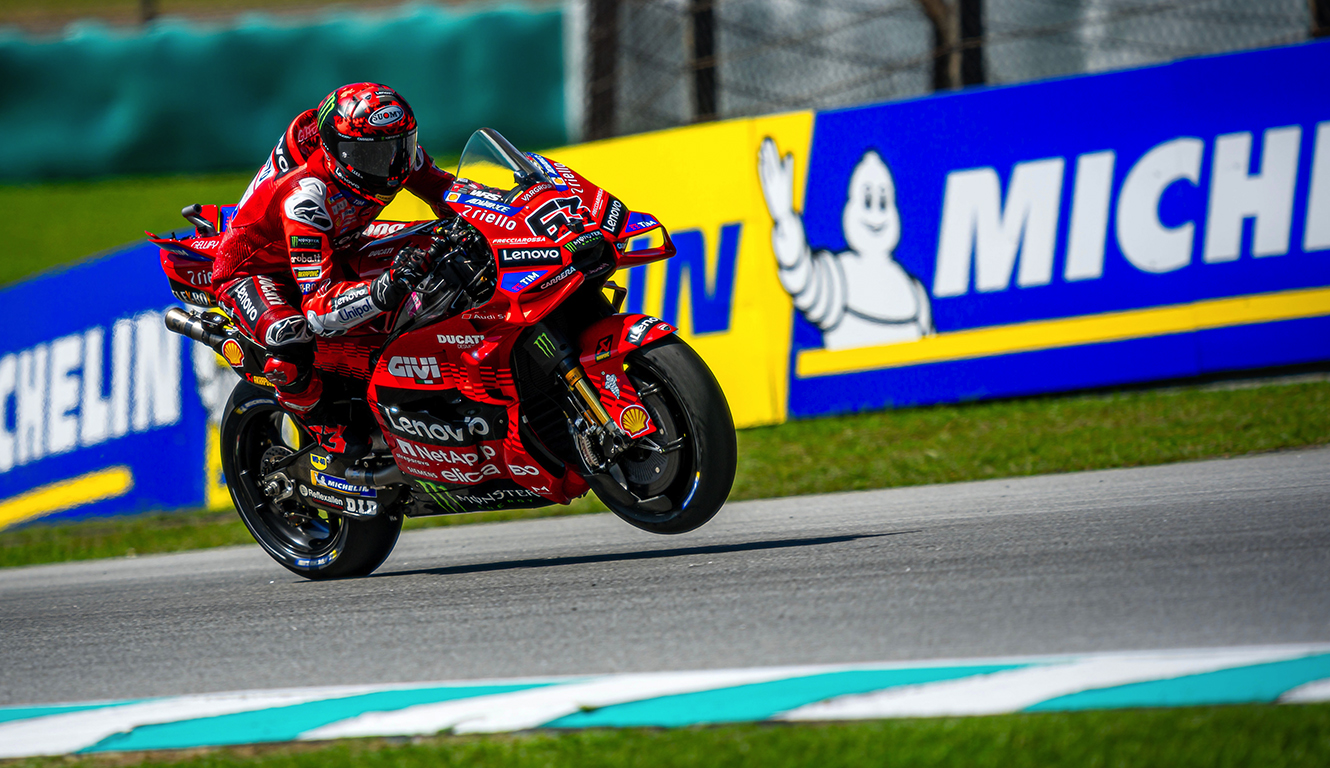 As the twentieth Grand Prix draws to a close, with Marc Márquez already crowned World Champion, Francesco Bagnaia sits fourth in the standings, five points behind third place. The Triple Crown is completed by the Teams’ title secured by the Ducati Lenovo Team and the Constructors’ title clinched by Ducati.