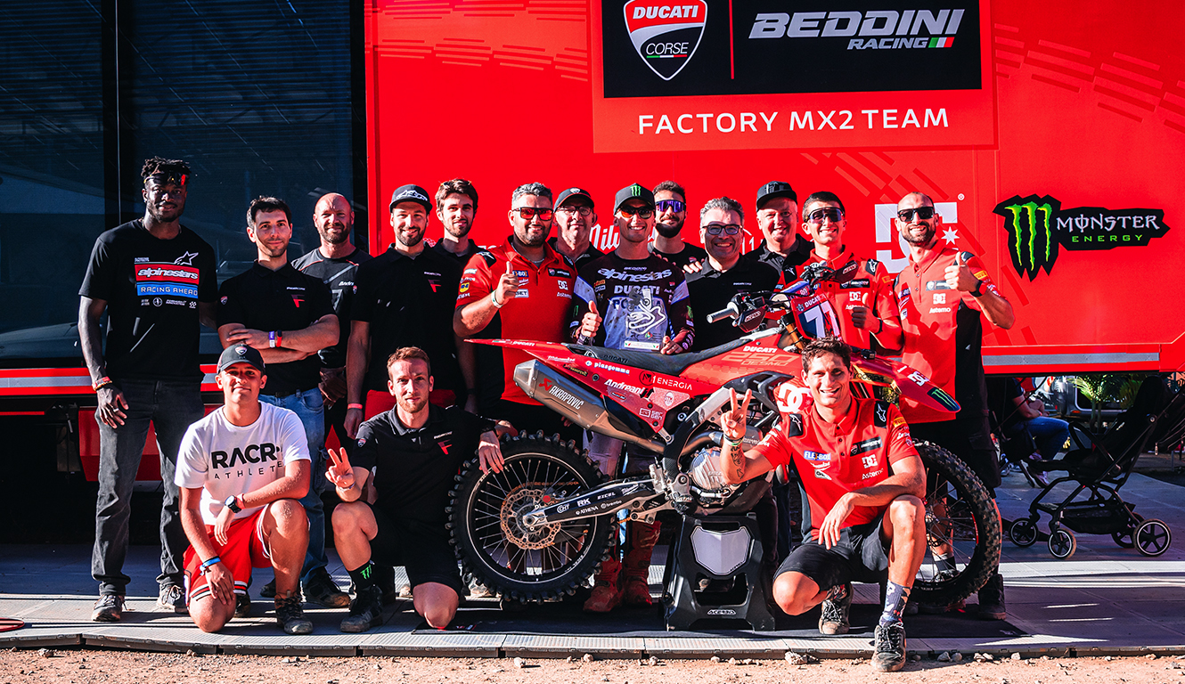After achieving the fastest time in his group and the pole position, Alessandro Lupino lined up for the first heat, determined to leverage his experience to bring home a prestigious result. Getting off to a good start on the Desmo250 MX, the Italian started in second place, limiting his risks on the treacherous and technical ground, and holding the position until the checkered flag. At the start of the second heat, Alessandro again got off to a good start and took the lead of the group on the first lap, holding the lead for a lap before relinquishing the position. With excellent pace, Lupino finished the second heat two seconds from the winner, securing two second-place finishes, earning the fourth podium of the year and consolidating his second position in the championship.