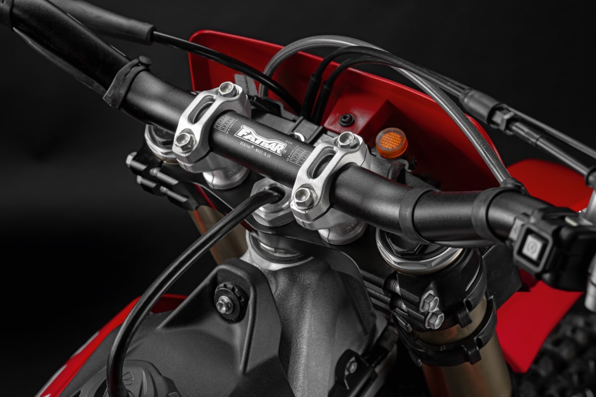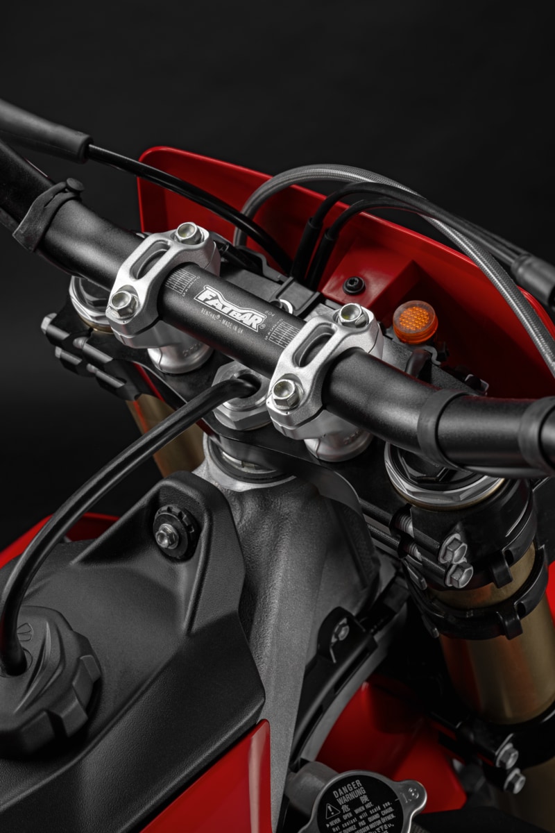 Manufactured from CNC-milled and machined aluminium, they feature an elegant anodised surface, and ensure optimal steering pivot rigidity with 100% alignment of the fork stems. The optimised geometry allows them to adapt and lock onto the fork with absolute precision. They feature an OFF-SET of 20 mm like the OEM bike. A top-notch component for a high-performance motocross experience, offering extremely precise and smooth fork response, excellent handling, increased front wheel stability, and an overall smoother power development throughout the vehicle.