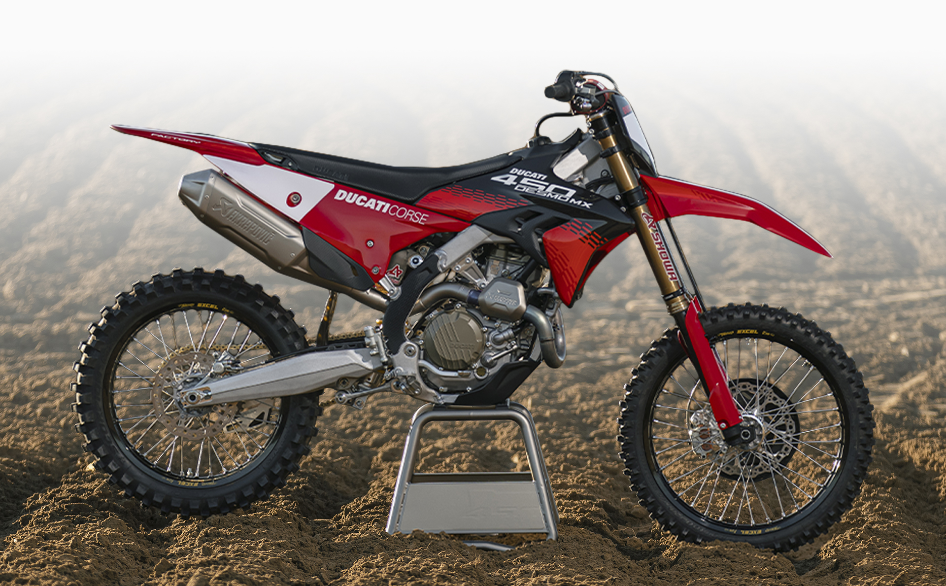 The Desmo450 MX Factory is born from a desire to expand and engage new fans. Conceived in 2021, it fully embodies the Ducati development philosophy of testing and honing on the racetrack solutions that are then transferred to the production bikes.