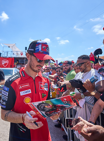 Customer ServicesDucati Island returns to the MotoGP™ Red Bull Grand Prix of the Americas on March 27–29, 2026, in Austin, TX, arriving in Ducati's centenary year and bringing the world’s most passionate celebration of racing back to Texas. Join fellow Ducatisti as we rally behind our championship-winning riders, Marc Márquez and Francesco Bagnaia.