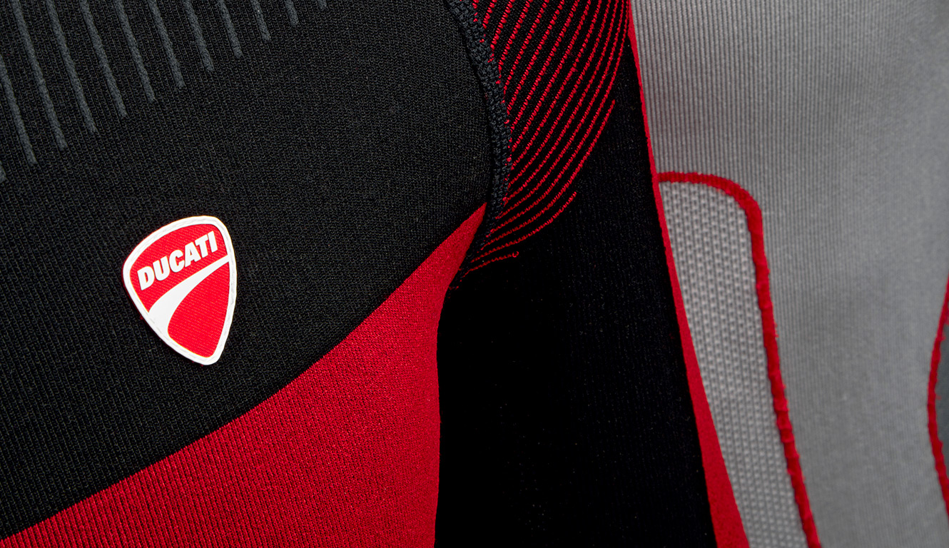As the latest generation Activewear garments, the new Ducati collection stands out for its breathability and thermoregulation. Excellent breathability is guaranteed by the differentiated fabric structure, which absorbs excess moisture, prevents sweat from flowing and causes it to evaporate, eliminating it completely, to always leave the skin dry. Thermoregulation is ensured by the Dryarn® microfibre structure, which creates a breathable barrier while maintaining the correct microclimate of the body.