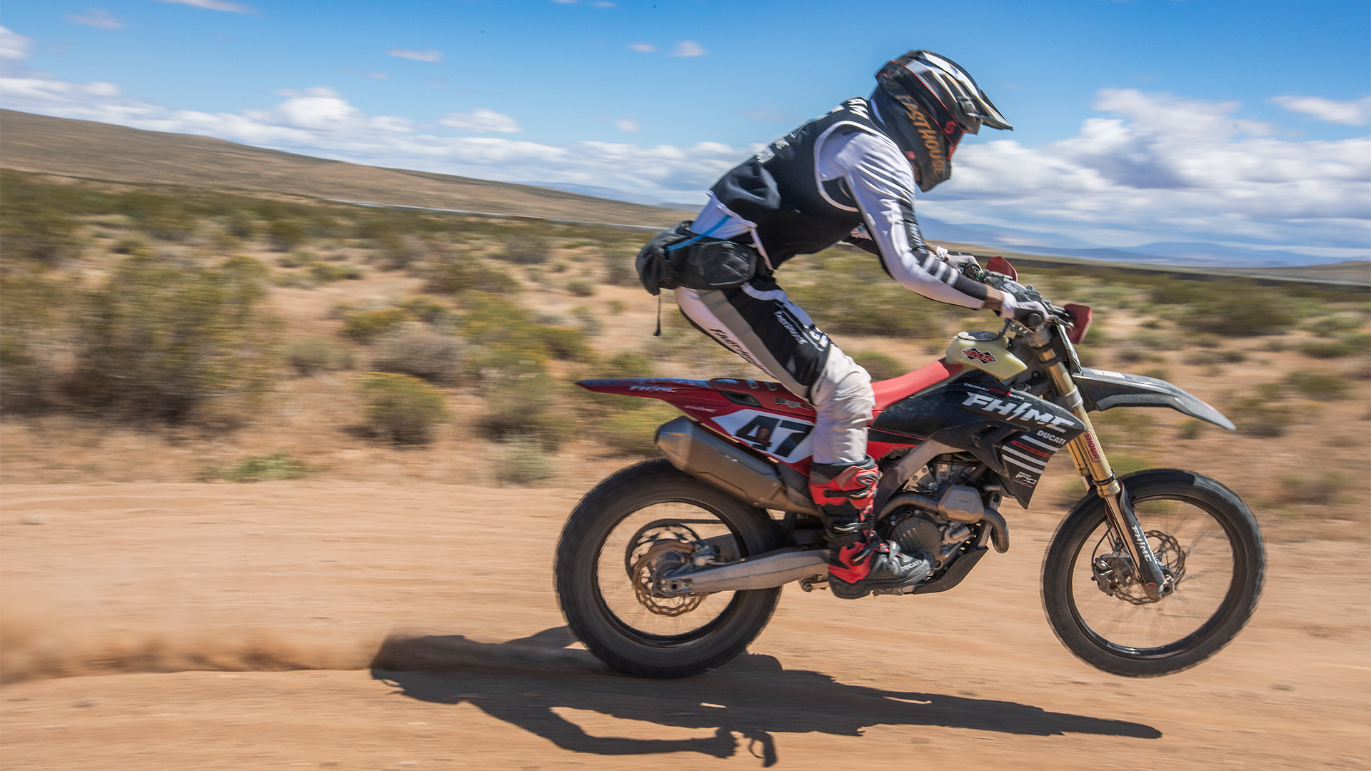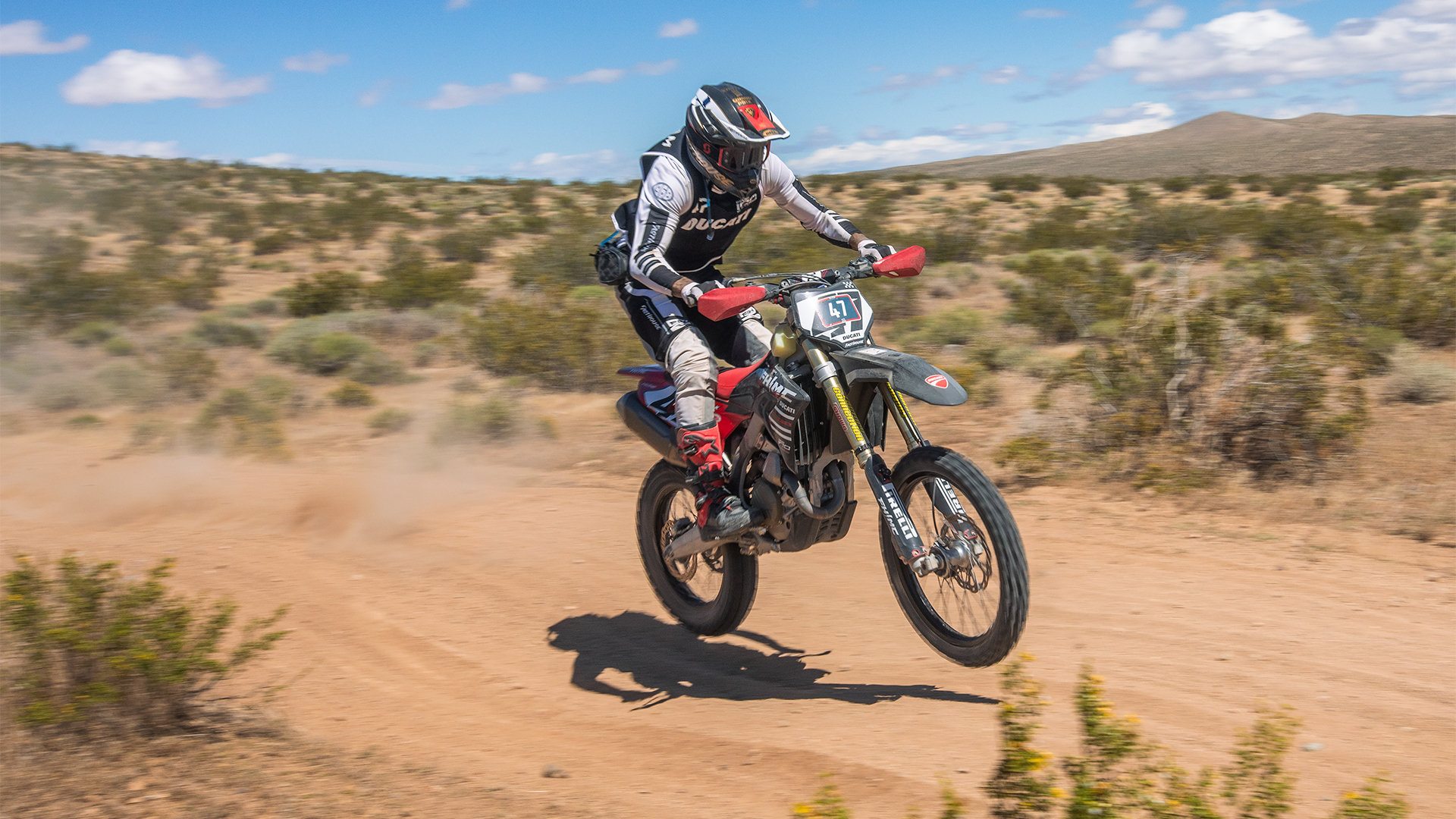 Designed for both desert racing and enduro competition, the Desmo450 EDX proved its performance and durability across the demanding Mojave terrain.