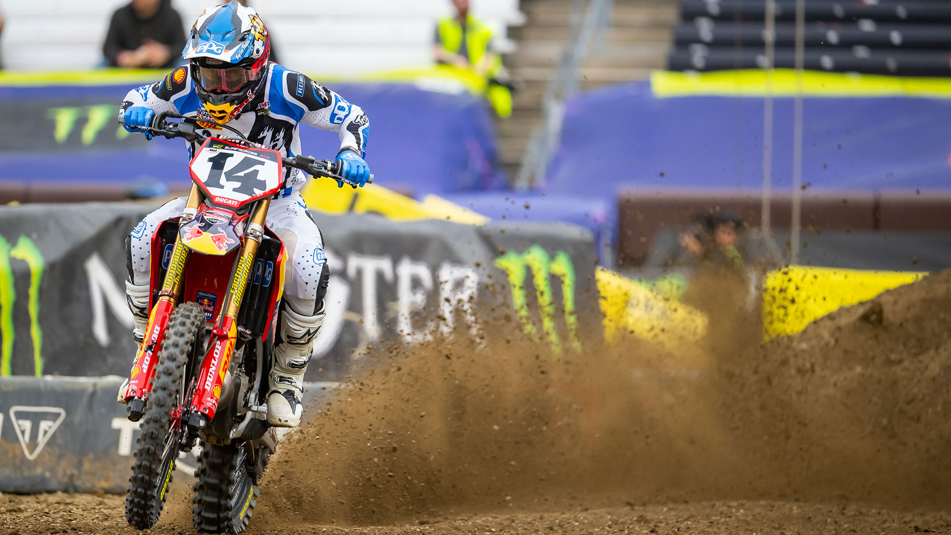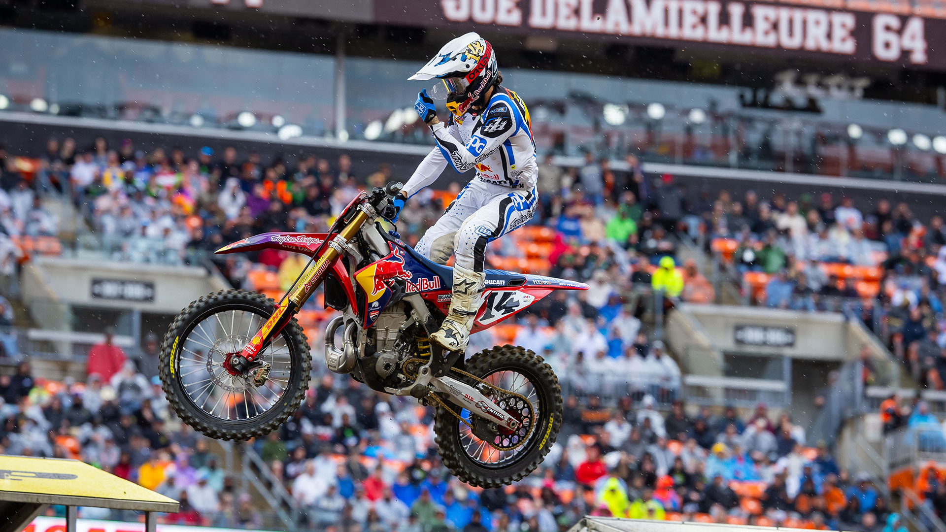 Sunnyvale, Calif., April 18, 2026 — The Troy Lee Designs Red Bull Ducati Factory Racing Team took on a unique and demanding track for round 14 of AMA Supercross Series this weekend as the series returned to Cleveland for the first time in 30 years. With a brand new venue, slippery dirt conditions, and the high-pressure Triple Crown format, the event presented a fresh challenge for both the rider and team.