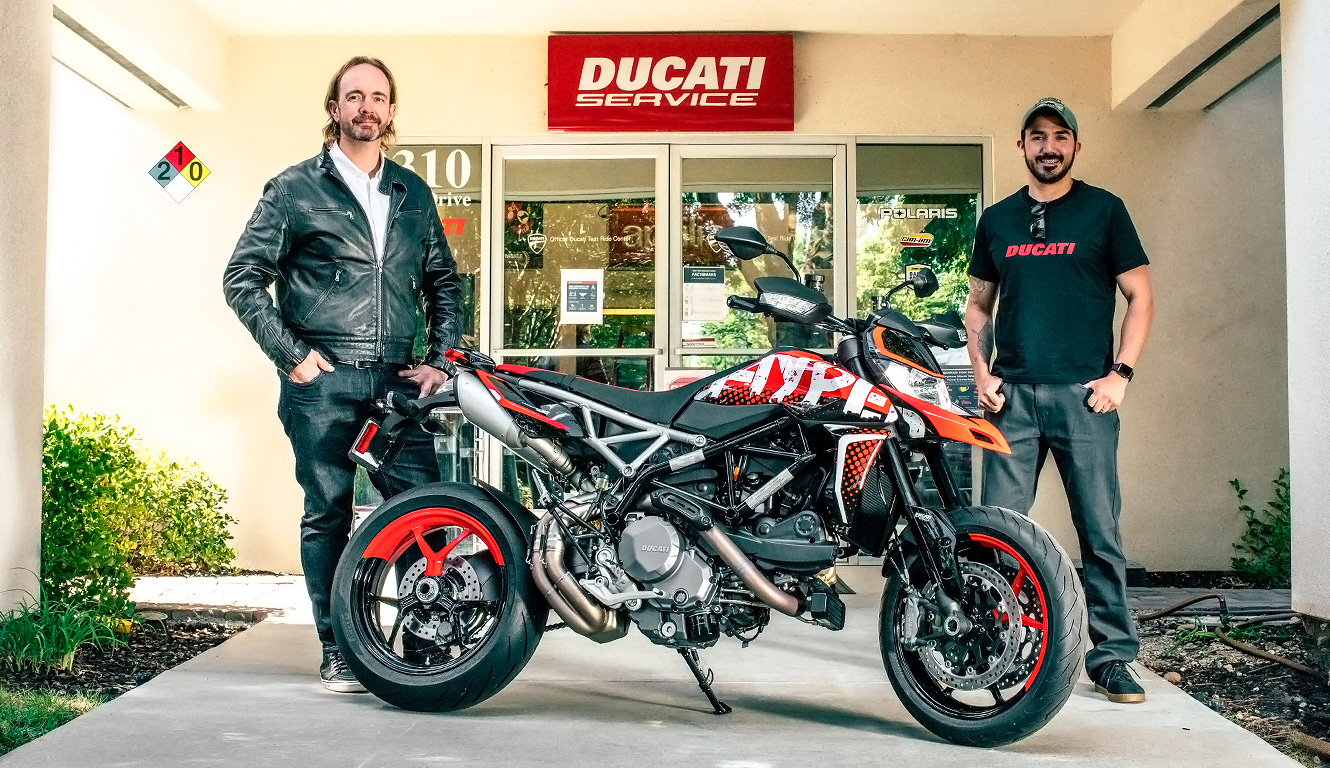 Jose Carlos Sagarminaga, 35 years old, already owner of a Hypermotard SP that he also uses on the track and member of the DOC of Sacramento, has received the exclusive Hypermotard 950 with special livrery at the California Speed-Sports dealership with the presence of Jason Chinnock, CEO of Ducati North America.