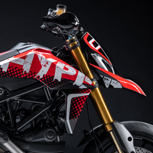 The graphic concept, presented at Villa d’Estelast year,also inspired the new born Ducati, the Hypermotard RVE, with the“Graffiti”livrery and equipped with the Ducati Quick Shift (DQS EVO) included in the electronic package that comes with this new version.