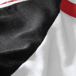 Glossy finished kangaroo leather (thickness mm 0.9 +/- 0.1), it stands out for excellent tear and abrasion resistance. Among the materials currently in use for racing suits, kangaroo leather stands out for the best mechanical resistance to lightness ratio.