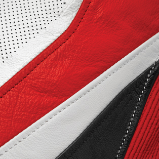 A material traditionally used in motorcycling clothing that offers a good level of breathability and guarantees increased abrasion resistance. It is a product that, starting from different bases, requires a complex series of manufacturing processes to ensure constant standards in terms of aesthetics and safety. The variation in thickness has a bearing on the perception of softness and resistance to tearing and abrasion. A thinner leather is more comfortable but is used for less technical products because it is less resistant. A thicker leather is more rigid but more resistant to tearing and abrasion. The characteristics also vary according to which part of the leather is used to produce the article.