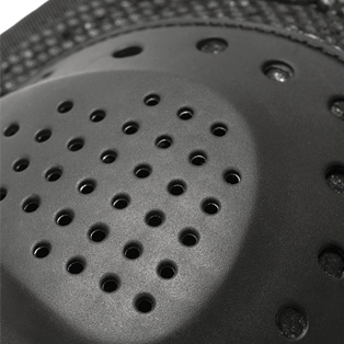 • A rigid outer plastic shell absorbs and distributes impact energy over the protector’s entire surface thanks to a thin reticulated structure