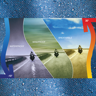 The membrane is specific for motorcycling, when water and wind soak through the fabric, and body temperature tends to drop if the right protection is missing. Tested and constantly updated with the use of Tecnorama artificial weather simulator for more than 20 years.
