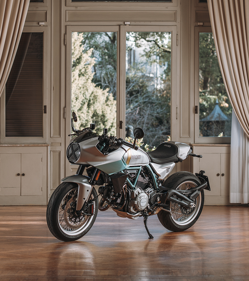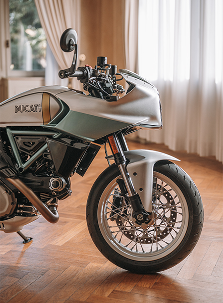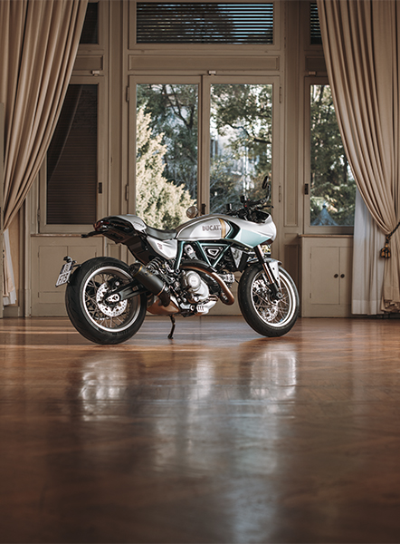 Formula 73 revokes the spirit of a model and an era that contributed to building the Ducati legend: the 750 Super Sport Desmo, a replica of the 750 Imola Desmo with which Paul Smart and Bruno Spaggiari triumphed in the 1972 Imola 200.