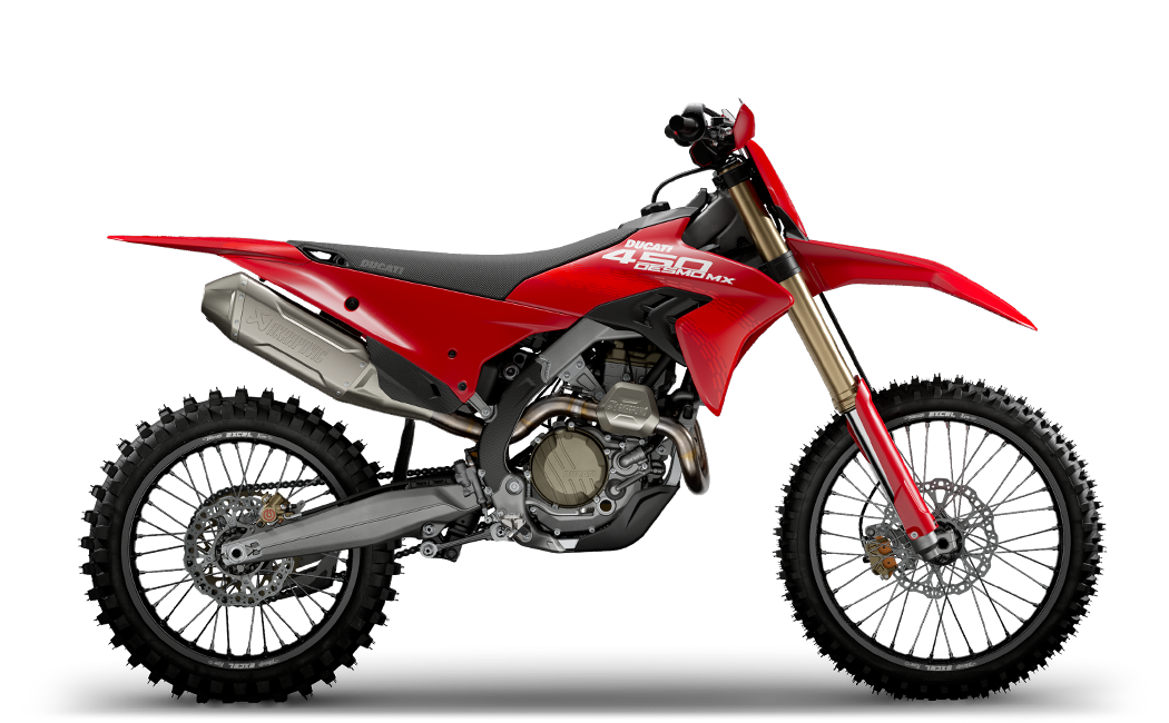 Desmo450, single cylinder, Desmodromic timing system 4 valves DOHC, hydraulic tensioner, semi dry sump, liquid cooled |