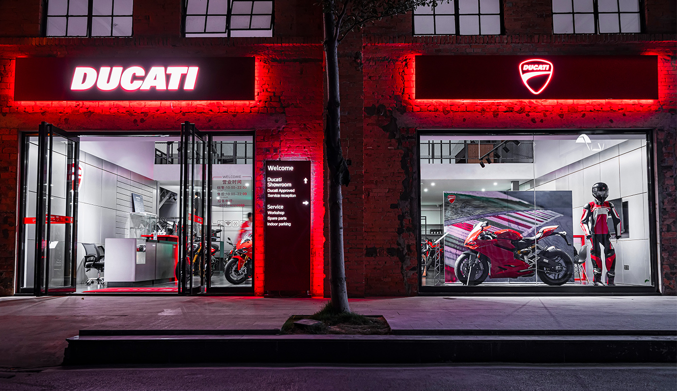 The Ducati Nanning dealer covers an area of 400 square meters, divided between showroom, service areas and offices.