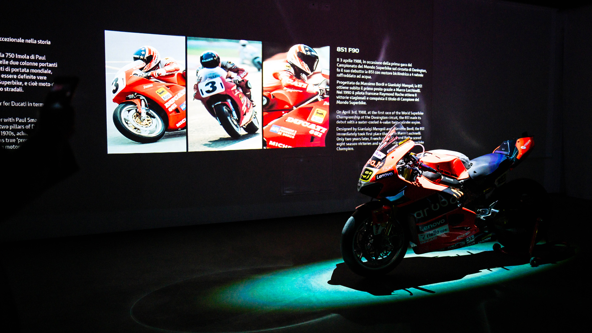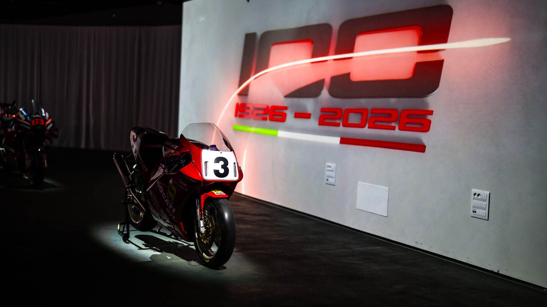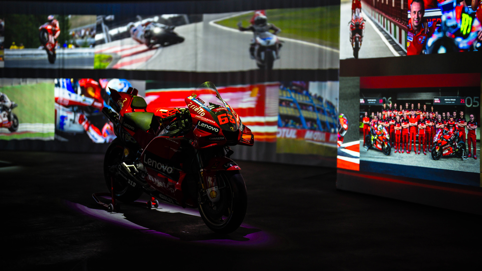 All around, snow. Ahead, champions ready to write new stories. In between, Ducati opens the dance and kicks off season 26 with something that goes beyond an event: an immersive room where you enter and find yourself inside a century of motorcycles and competitions. Iconic models, images, sounds.