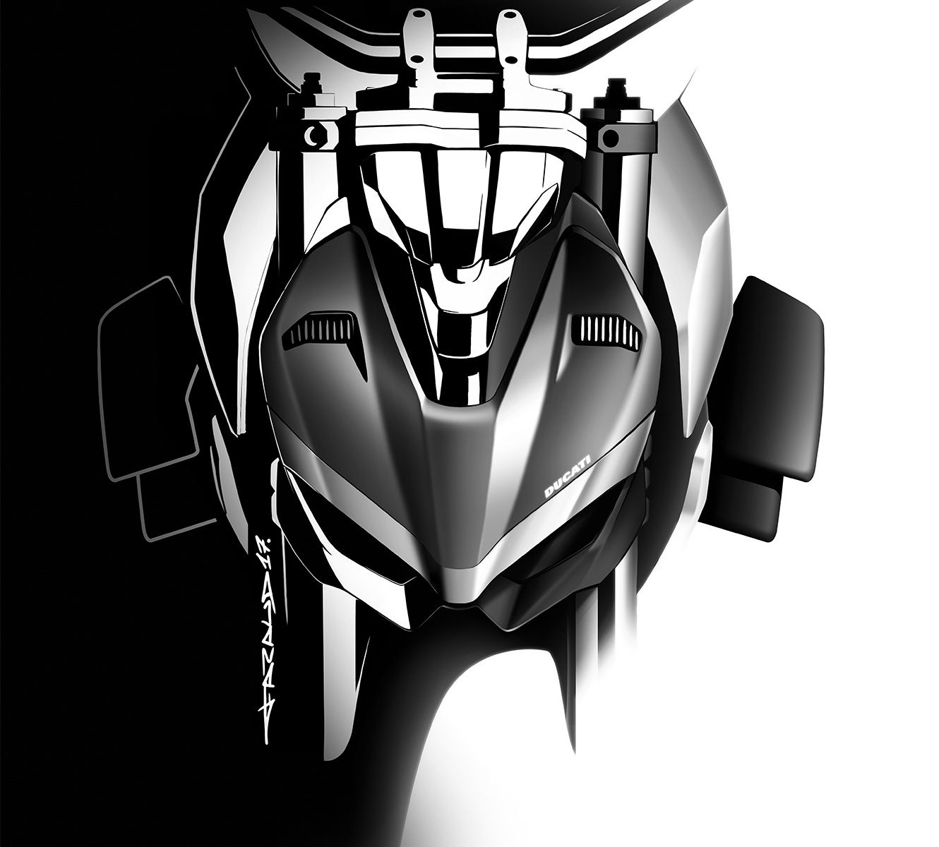 The front and the tank. The front because it’s like a person’s face. The emotions and the message that the bike wants to convey go through the projector, the front. That’s where you can tell if the bike will be aggressive, nice or funny. Then the tank because it represents the body of the bike. And it’s from the tank that you can see the bike’s attitude, even when it’s not moving.