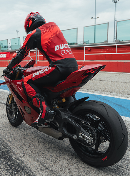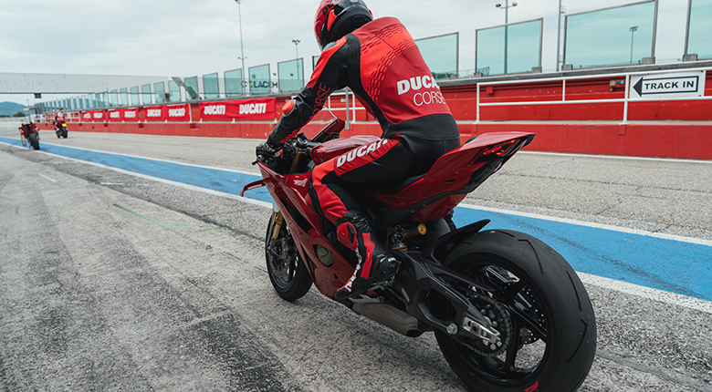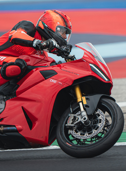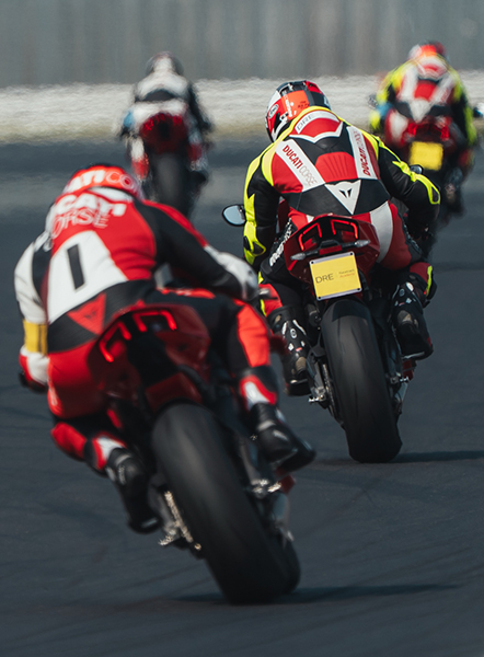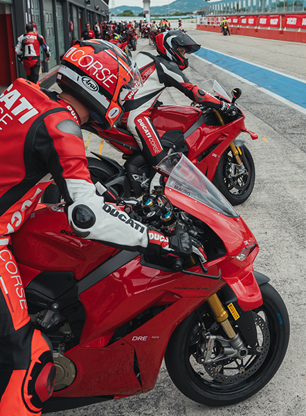 Every level, every goal: from the pursuit of perfection to the desire to experience the adrenaline rush between the curbs for the first time, among the most famous international circuits. All under the guidance of Dario Marchetti, rider and DRE Technical Director, on internationally renowned circuits and riding the most iconic bikes in the Panigale family, provided by Ducati.