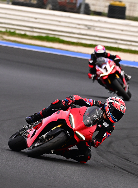 You will dive deep into advanced riding techniques, physical preparation and mental race management. You will take part in high-profile international events, gaining direct exposure to the racing world. At the end of the championship, riders who show the greatest potential, based on results and instructor assessment, will be invited to a test organised by Ducati on higher-spec race bikes to help guide the next steps of their career.