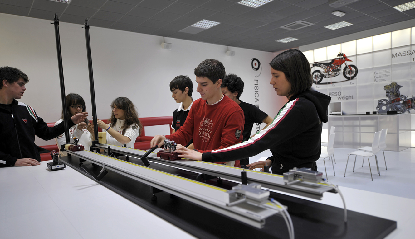 The Fisica in Moto experience consists of an inseparable package consisting of a visit to the teaching laboratory, from the visit to the factory and to the Ducati museum. Ducati Motor Holding reserves the right to vary the duration, content and program of the visit in case of production changes or special circumstances.