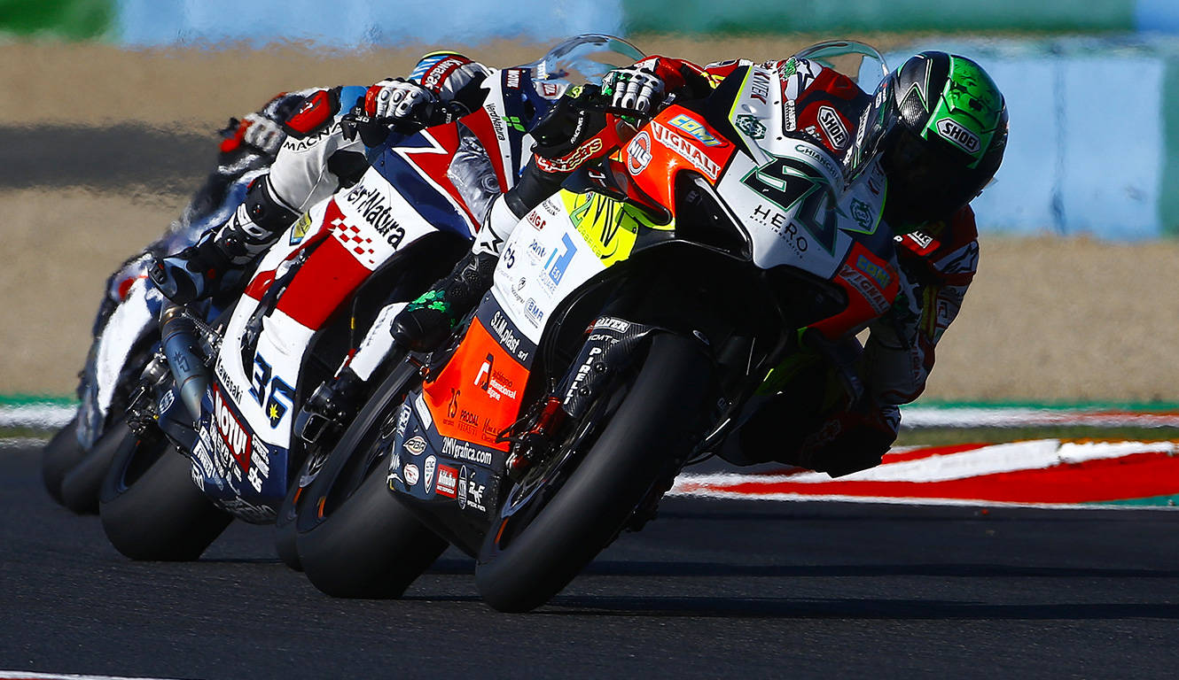 The Superpole Race starts under a beautiful sun that warms the asphalt of Magny-Cours. Eugene starts from the eighth position, tries to defend himself from the attacks of the big group behind him, but in the first laps he finds it hard to find the right feeling with the Panigale and loses some tenths, concluding on P 13.
