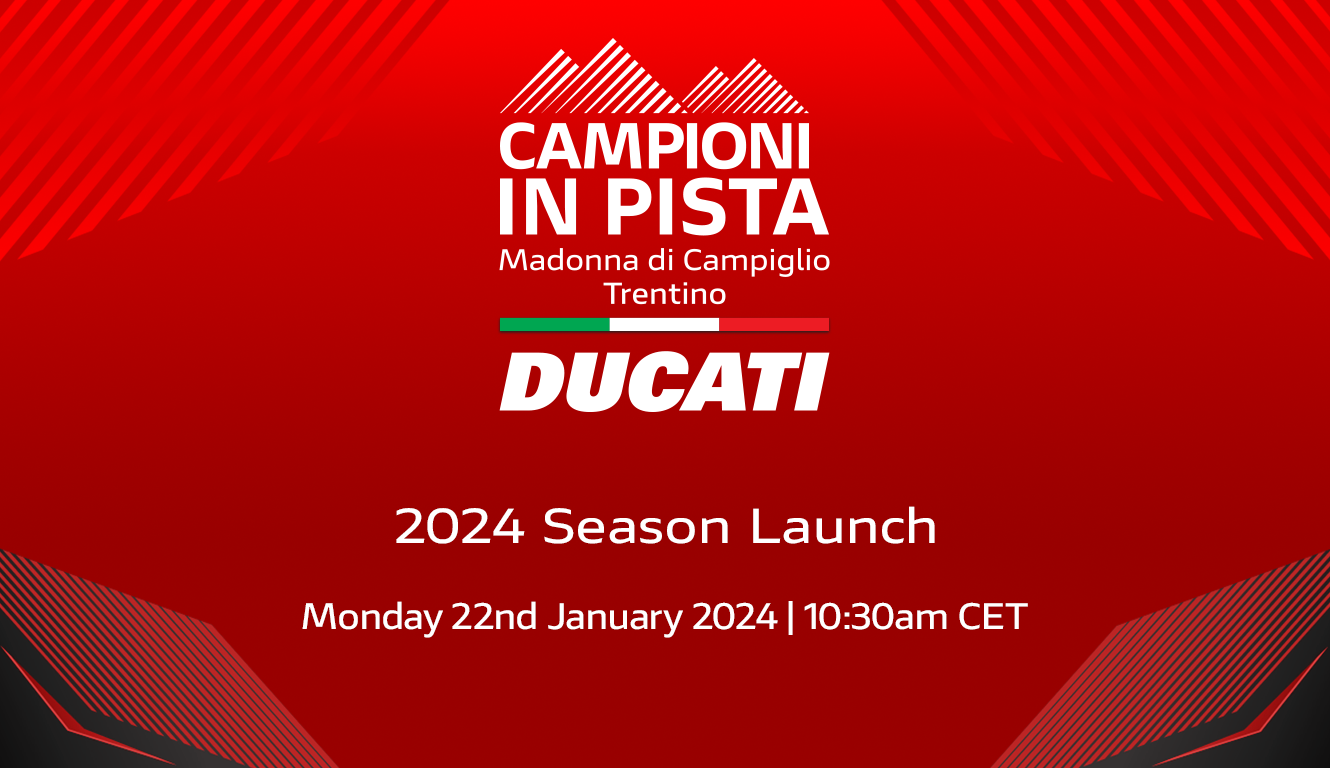 Discover moreThe Official Presentation of the 2024 Ducati Lenovo Team MotoGP, the Aruba.it Racing - Ducati WorldSBK team and the Ducati Corse Off-Road team will take place on January 22nd at 10:30am (CET) in the beautiful setting of Madonna di Campiglio (location linked to Audi by a strong and active partnership that has lasted 11 years).
