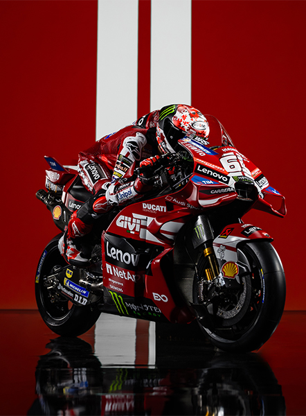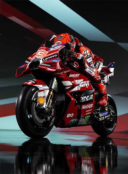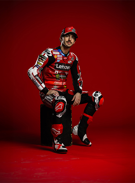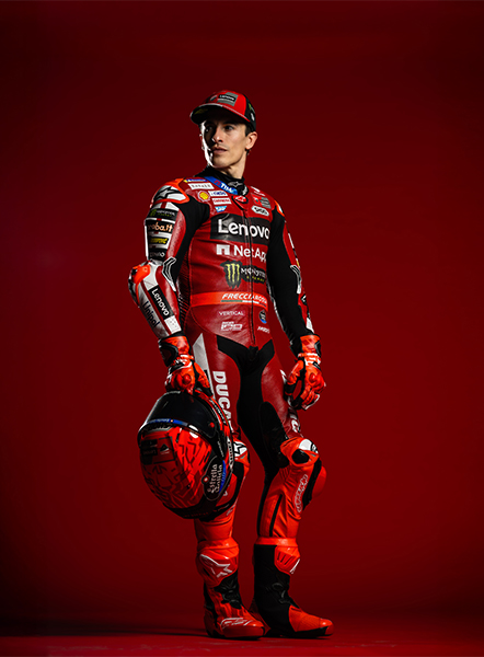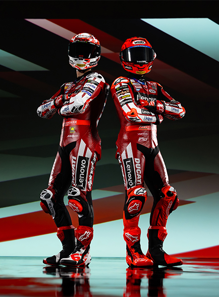 Honoring the Rosso Centenario of Ducati in 2026 a duo that needs no introduction. Nine MotoGP titles (7 for Marc and 2 for Pecco), two exceptional champions both on and off the track: Marc Márquez and Francesco Bagnaia. Protagonist of one of the greatest comebacks of all time, thanks to his willpower and dedication, Marc is ready to write a new chapter in motorcycling history. At his side, synonymous with resilience and commitment, Pecco, Borgo Panigale's most successful MotoGP rider, seeking redemption.