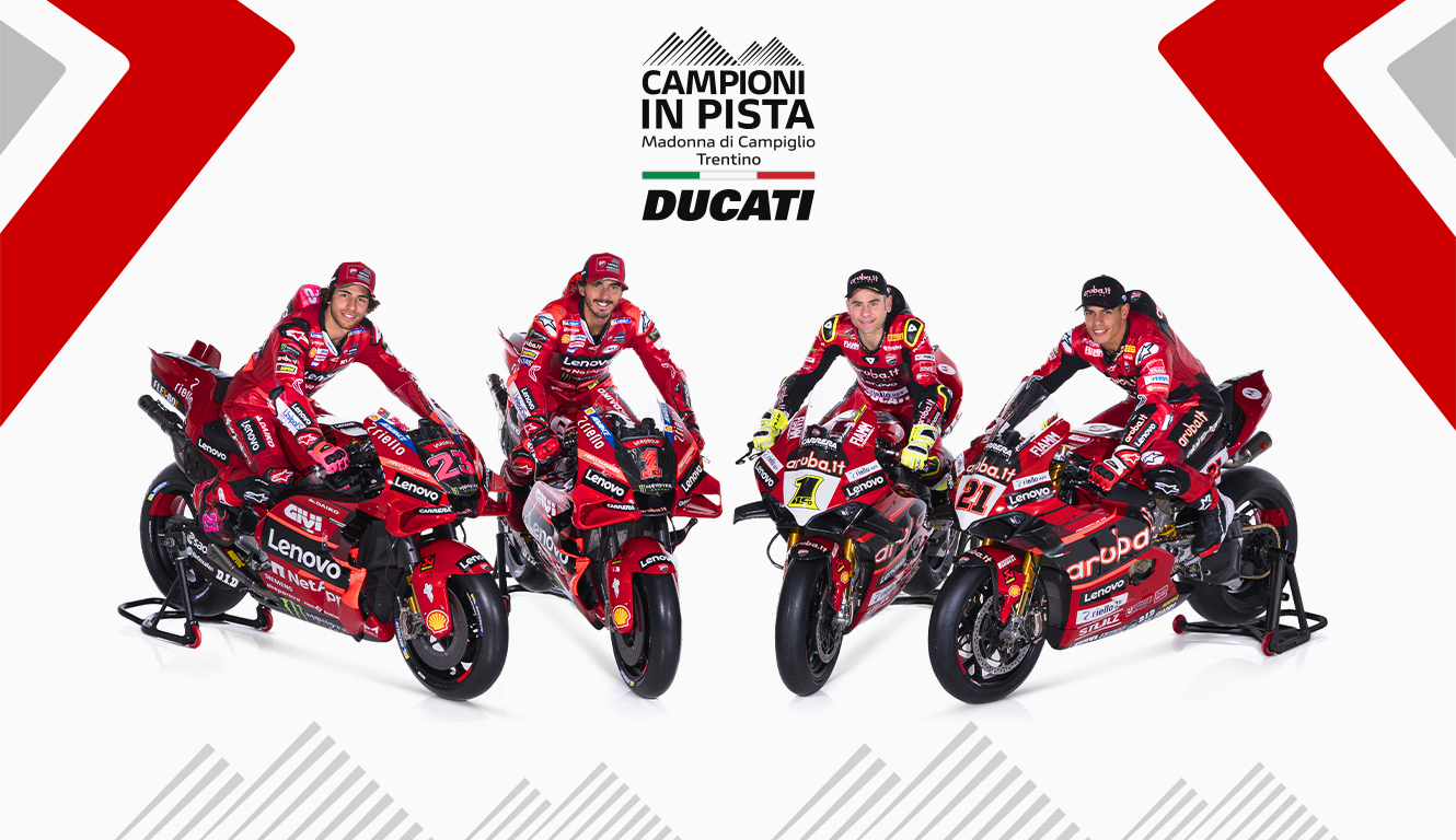 The Ducati Lenovo Team riders, together with the Aruba.it Racing - Ducati team duo, will be in Piazza Sissi, in the centre of Madonna di Campiglio, at 5:00pm to greet all their fans accompanied by the entertainment offered by Monster Energy, a new partner of Ducati Corse.