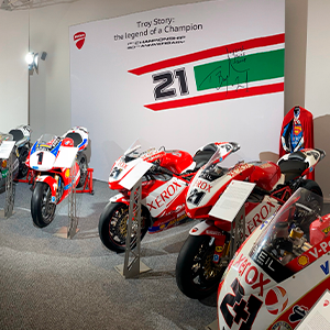 In the fascinating courtyard of the Military Academy, Ducati presents a selection of the bikes that make up the temporary exhibition "Troy Story: The Legend of a Champion" dedicated to Troy Bayliss to celebrate the 20th anniversary of the first world title won by the Australian rider in the 2001 Superbike World Championship. There will be the three bikes with which Troy won his three SBK titles: the 996 Factory 2001 Testastretta, the 999 Factory 2006 “Superman”, and the 1098 R Factory 2008.