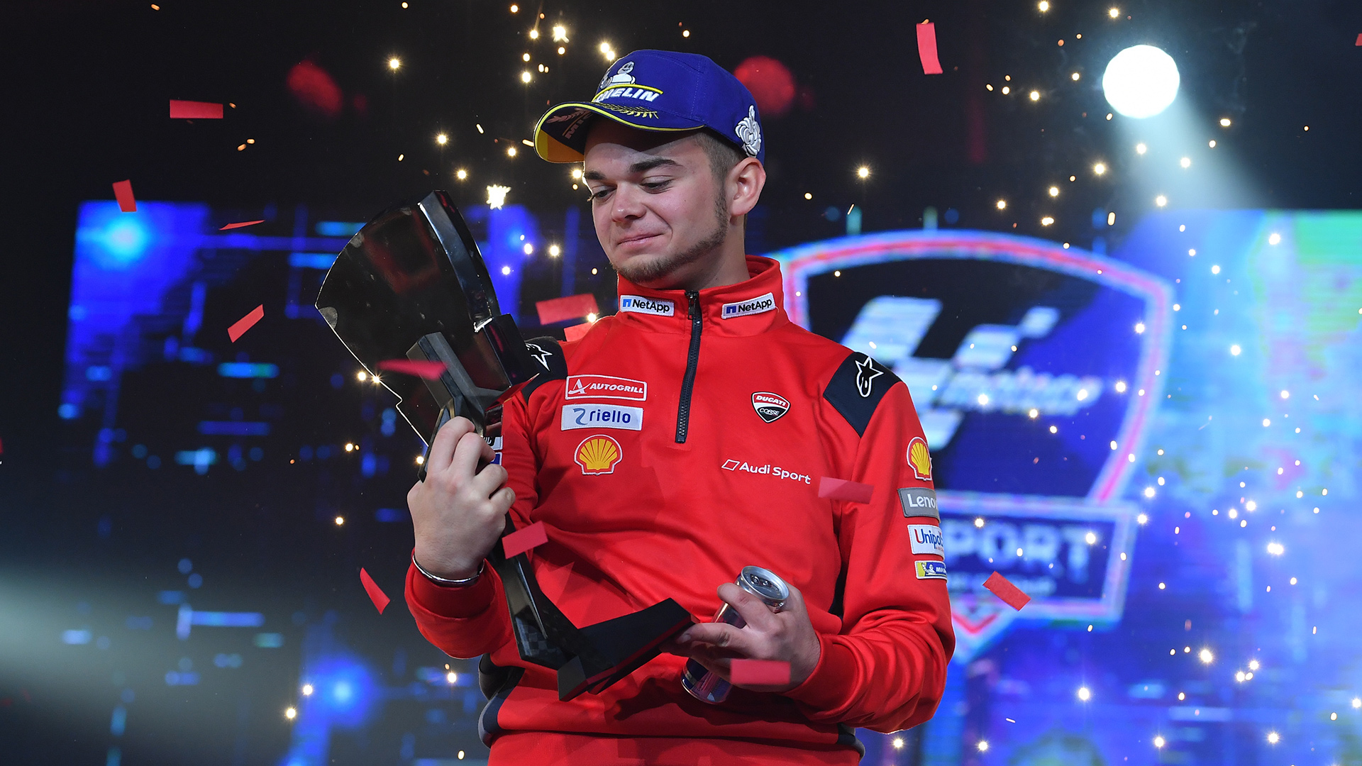 "eSport is an entertainment platform that has grown quickly during the last years: innovation, progress and technology are part of Ducati DNA, and that is why we have decided to commit in this new adventure. We were already discussing to officialize this relationship with Andrea before he became World Champion in order to be able to dress him with the official colours of Ducati Corse, riding a virtual Desmosedici GP bike, for the 2020 World Championship. Andrea isn't just an extraordinary eSport rider, but also a true Ducatista. He comes from Bologna; he lives a few kilometres away from Borgo Panigale, he rides a Ducati Monster, and that is for us an added value. We wish him good luck, and we can't wait for the new championship to begin".