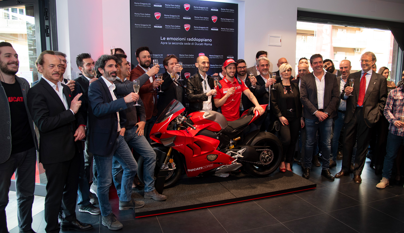 Claudio Domenicali, CEO of Ducati and Francesco Milicia, VP Global Sales & After Sales officially inaugurated the new Store with the participation of Andrea Dovizioso, official rider of the MotoGP Mission Winnow Ducati team and Luca Nanni, Branch Director of Ducati Roma.