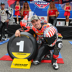 A production motorcycle accessorized with Ducati Performance parts, ridden on the track by Alessandro Valia, racing against internationally renowned WSBK-spec bikes and riders, achieving the pole position on Friday and the first place in both races on Saturday and Sunday.