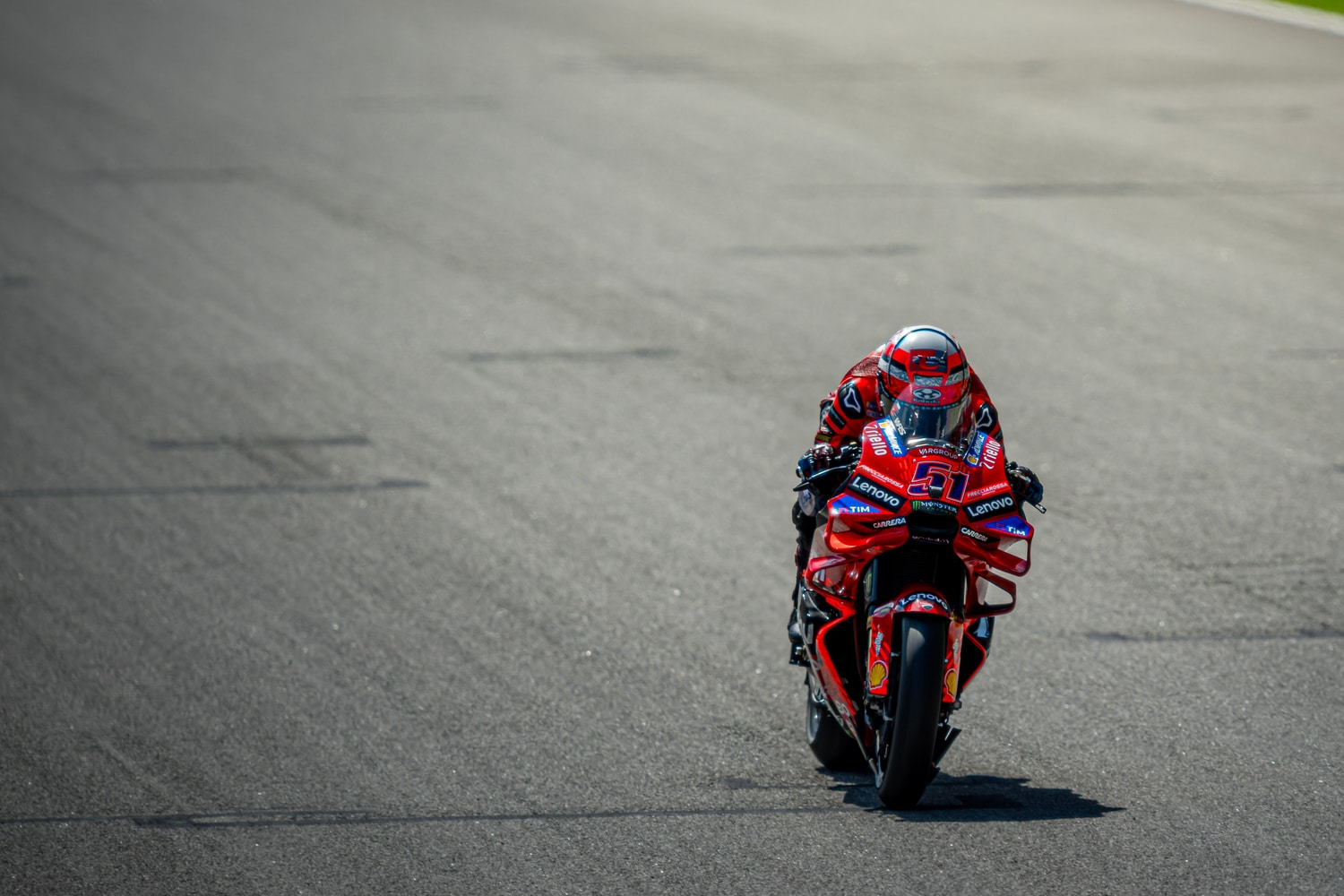 Bagnaia lost the lead on lap two but kept Alex Márquez in close range for more than half the race distance. After defending second place well from Pedro Acosta’s attacks, he dropped to third and began to lose ground. With three laps remaining, Pecco returned to the pits and retired due to a flat rear tyre. Michele Pirro completed the weekend with a seventeenth-place finish.