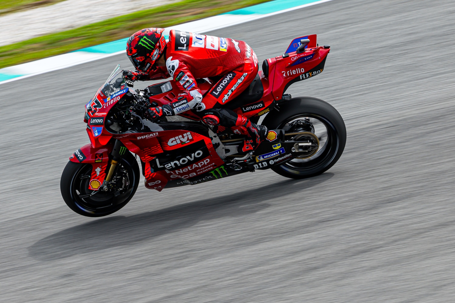 The Ducati Lenovo Team enjoyed a dominant Saturday at the Sepang International Circuit courtesy of Francesco Bagnaia, who came out victorious in the Sprint from pole position. Michele Pirro completed the encounter in twentieth place.