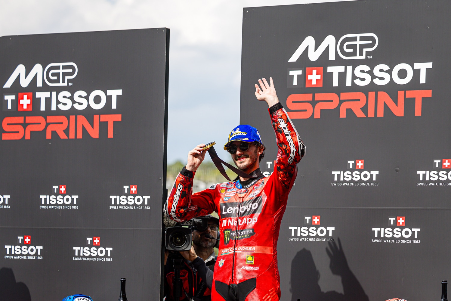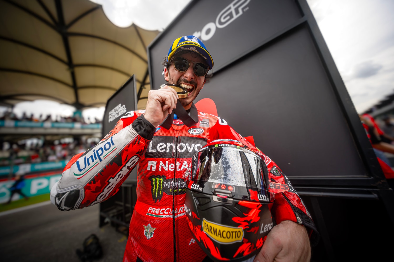 Francesco Bagnaia and the Ducati Lenovo Team win the Sepang Sprint starting from pole. Michele Pirro finishes twentieth