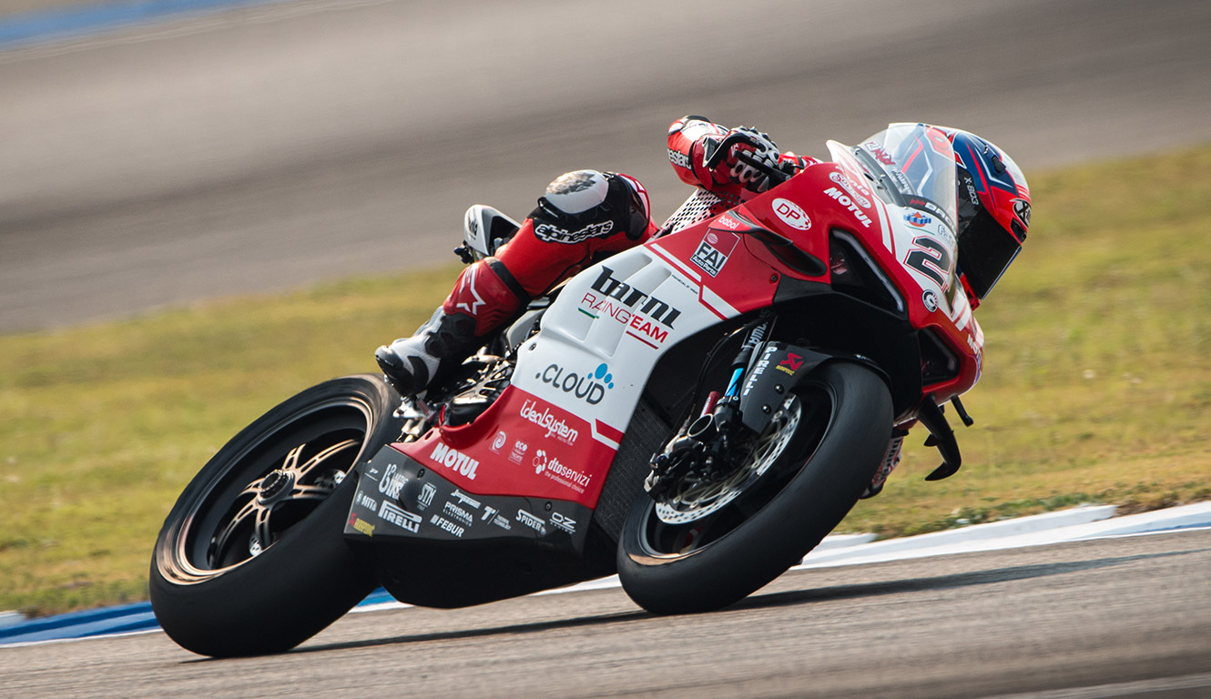 Discover moreIn the sweltering heat of Thailand (35°C air / 47° asphalt during race 1) a great comeback and a very positive result for Barni Racing Team’s rider Michael Rinaldi arrived. After a race 1 one full of overtakes he was able to move up from the sixteenth position of the starting grid to the eighth place of the finish lane.