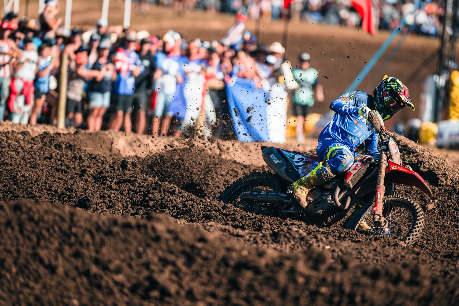 With a strong beginning in race one, Jeremy settled into tenth on the opening lap, while Tony dropped out of the top 20 after a collision exiting the gate. The Swiss rider fought hard over all 16 laps to hold his position and crossed the line in 11th. The Italian, struck forcefully by another athlete during the chaotic early stages, crashed and rejoined in 37th with a sore hand. Gritting his teeth, Cairoli climbed back to 25th before heading to the medical centre for evaluation immediately after the moto.