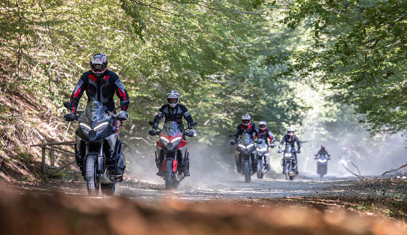 The DRE Adventure format is characterized by an extensive program which sees moments of riding instruction combined with a charming tour surrounded by greenery where it is possible to appreciate the dynamic characteristics of Ducati motorcycles on different terrains. Thanks to a pool of top-level instructors, the course provides motorcyclists with the opportunity to discover the secrets of the Adventouring world: from the correct riding position, to learning the most effective off-road riding techniques, up to technical advice and logistics in preparation for the trip and the management of unforeseen events that may arise during the journey. Furthermore, thanks to the extensive customization possibilities for the saddle and suspension, with different raised and lowered solutions, each of the motorbikes used in the DRE Adventure courses can adapt to the characteristics of each participant.