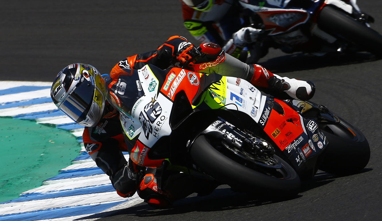 Discover moreTommy Bridewell starts the Saturday on the curvy Jerez circuit with several difficulties; the bike has been shaken-up since yesterday, but the lap time was hard to be set. The Ducati Panigale's set-up is not perfect yet and the English ace finds problems in the fast corners which characterize the second part of the track.