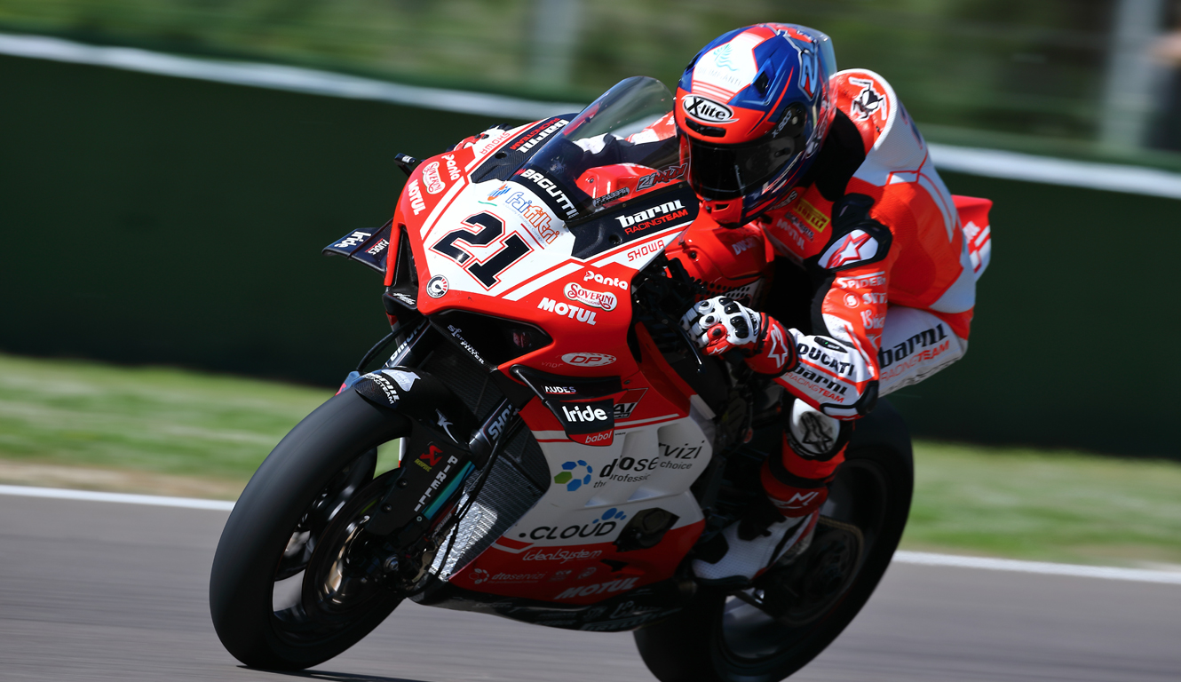Discover moreIt was a crazy Saturday for Barni Racing Team and his rider Michael Rinaldi at the Autodromo Internazionale Enzo e Dino Ferrari in Imola, where the 5th round of MOTUL FIM World Superbike Championship took place. After a disappointing Superpole where Rinaldi was able to do only one flying lap due to a technical problem, he was the protagonist of a great comeback in race 1 until the eight position.