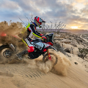 The whole Ducati CDP-Entrophy Team after a lot of preparation work took the DesertX Rally to extreme and fast races to the great satisfaction of both World Champion Antoine Meo and novice amateurs, proving this bike very reliable and extremely rideable.